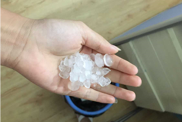 天災(zāi)的來臨造成了我們無法準(zhǔn)時(shí)的將生產(chǎn)出的外墻真石漆發(fā)出去,只有往后延遲,無能為力。下面附張冰雹圖給大家看看秋季的冰雹長什么樣n(*≧▽≦*)n